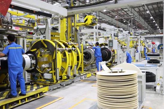 在半鋼胎智能制造成功打造的基礎上, 通用股份智能化工廠構建“大數據工業大腦”,致力于從原材料入庫到成品出庫全過程的智能化生產,以全過程自動化、全領域信息化、全物流智聯化的高端制造為目標,力爭打造工業4.0樣板工廠,不斷提高生產效率,嚴格把控輪胎質量。